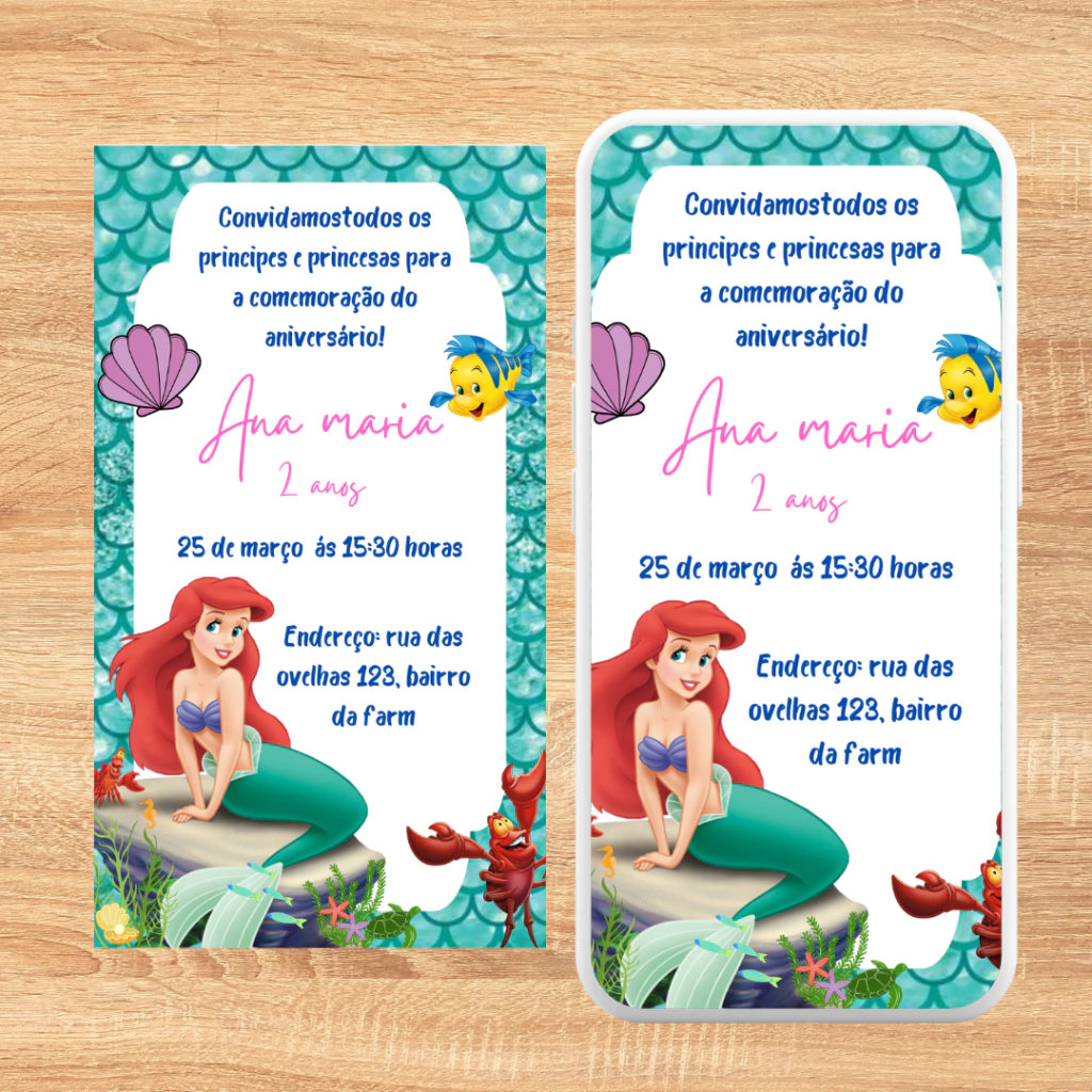 * O prazo de 2 dias úteis é para o convite do anúncio, exatamente como ele está, sem alterar nada além de nome, idade, frase e data da festa.